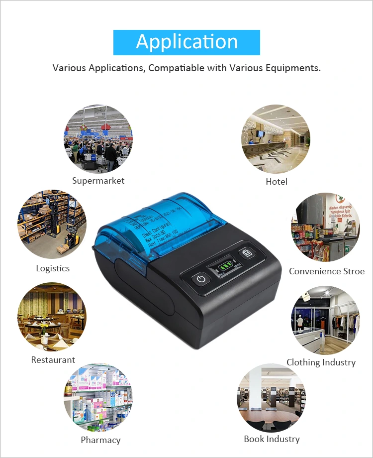 சிறிய கையடக்க வெப்ப அச்சுப்பொறிகளுக்கு சந்தையில் பெரும் தேவை உள்ளது, குறிப்பாக சில்லறை விற்பனை, கேட்டரிங், எக்ஸ்பிரஸ் டெலிவரி மற்றும் பிற சேவைத் தொழில்களில். உதாரணமாக, இந்த வகையான பிரிண்டர் வணிகர்கள் மற்றும் சேவை வழங்குநர்களுக்கு வசதியான மற்றும் திறமையான செக்அவுட் தீர்வை வழங்குகிறது. சிக்கலான கம்பி இணைப்புகள் தேவையில்லாமல், புளூடூத் தொழில்நுட்பம் ஸ்மார்ட்ஃபோன்கள், டேப்லெட்டுகள் அல்லது மொபைல் சாதனங்களுடன் விரைவாகவும் எளிதாகவும் இணைக்க உதவுகிறது, செக்அவுட் செயல்முறையை வேகமாகவும் வசதியாகவும் செய்கிறது. கையடக்க மற்றும் இலகுரக வடிவமைப்புடன், மொபைல் பாயின்ட் ஆஃப் சேல் அல்லது சர்வீஸ் காட்சிகளுக்கு ஏற்றது.